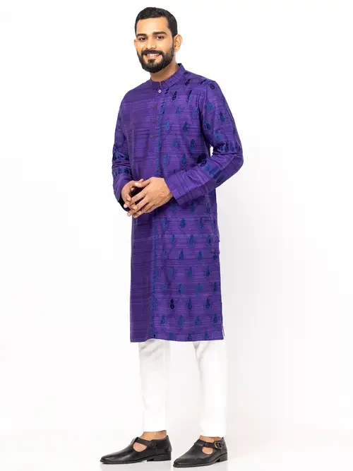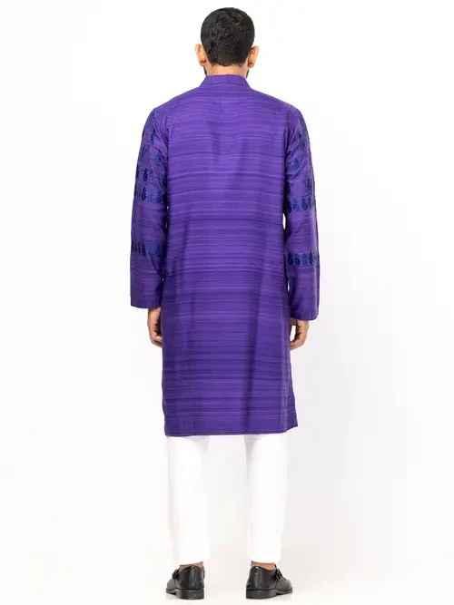 Purple Embroidered Endi Silk Panjabi