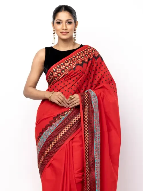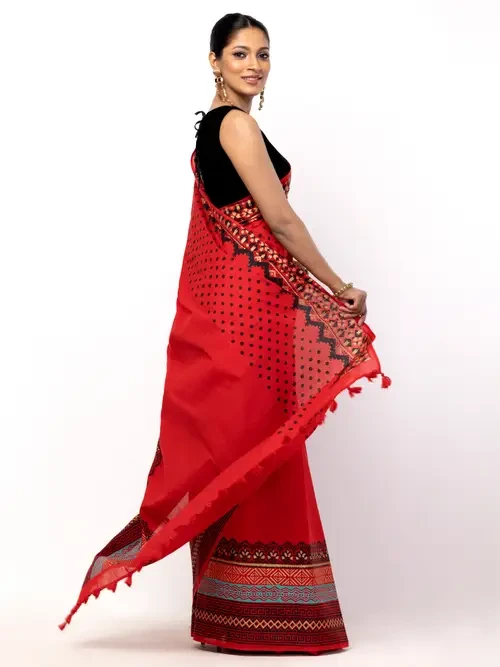 Red Printed Cotton Saree